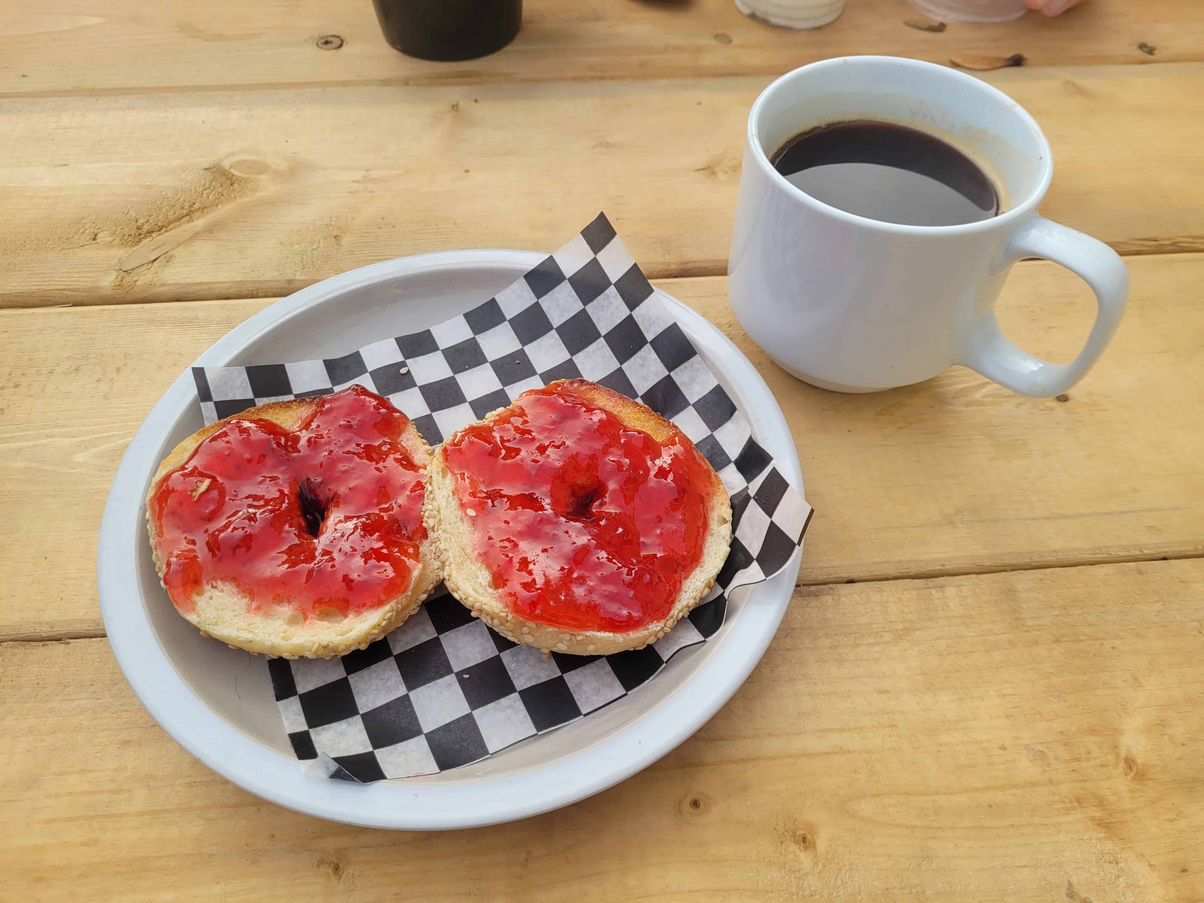A close-up of freshly brewed coffee and a hearty breakfast at The Battery Cafe, featuring locally sourced ingredients for a true taste of Newfoundland in every bite.