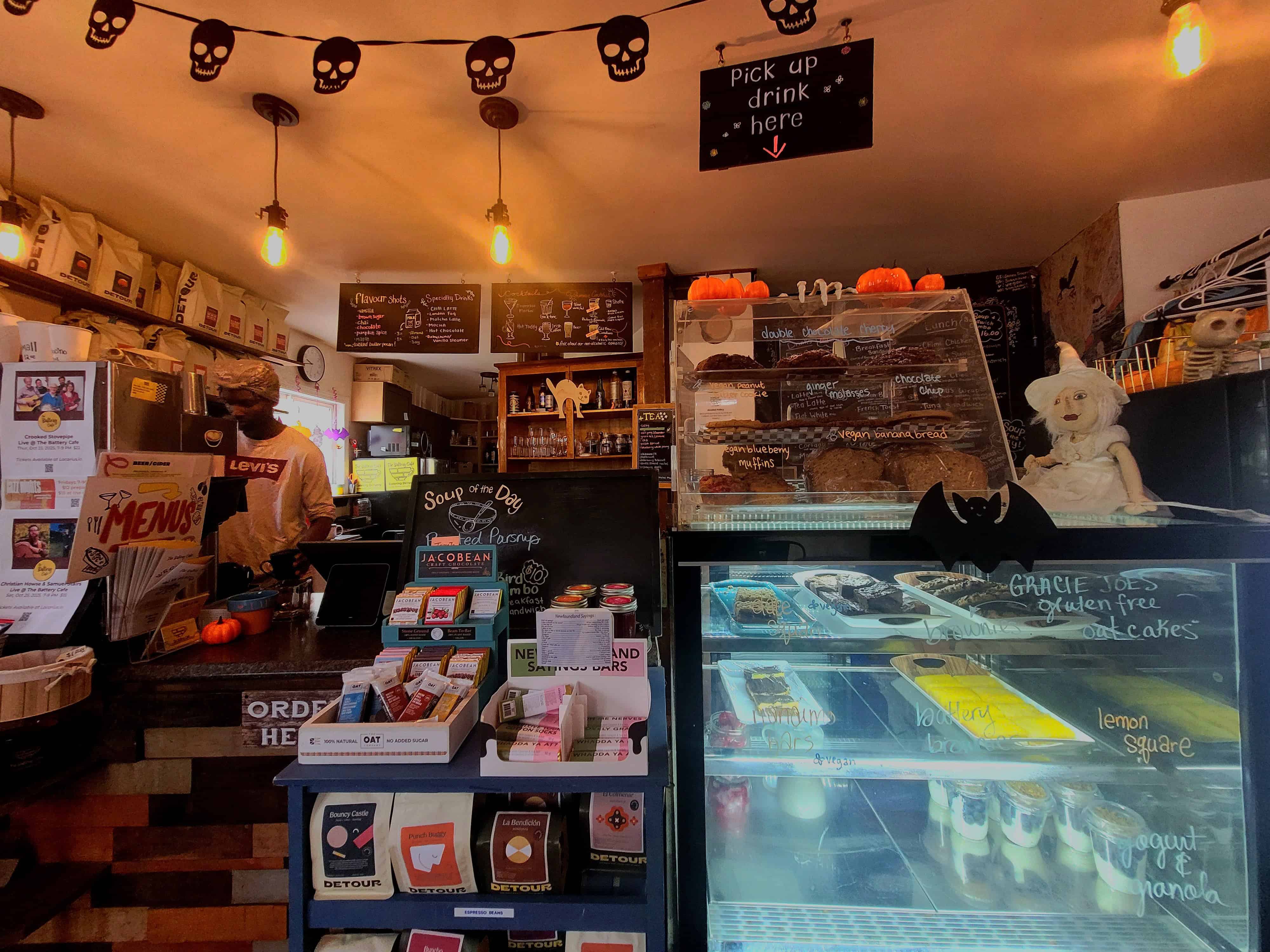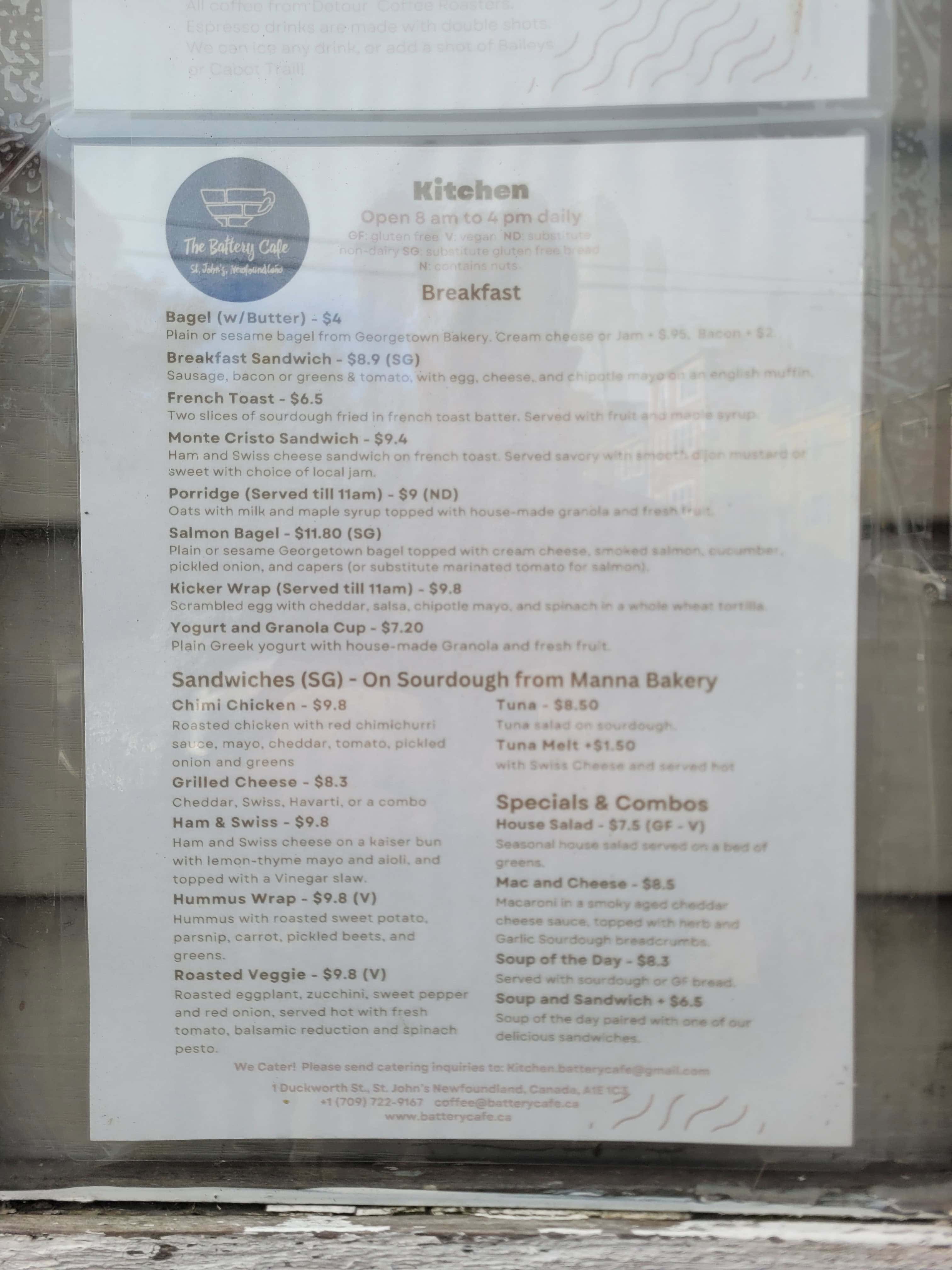 The cafe serves a variety of tasty dishes, from freshly brewed coffee to hearty breakfast options, soups, sandwiches, and pastries. Whether you're grabbing a quick bite or settling in for a leisurely meal, The Battery Cafe prides itself on using locally sourced ingredients, offering a true taste of Newfoundland's flavours. They even offer a take-out window for anyone wishing to take their treats with them.