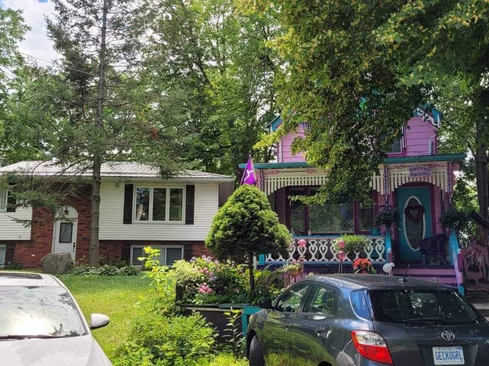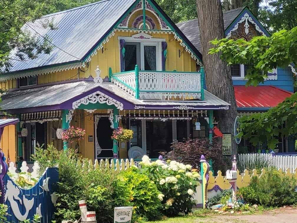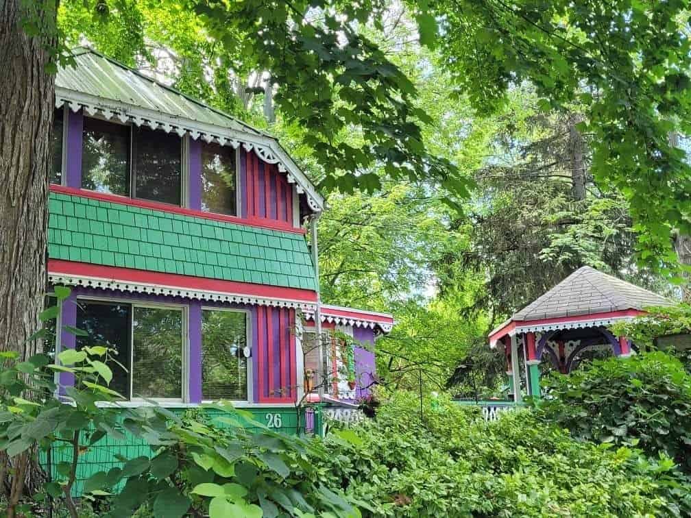 On the shores on Grimsby Beach in Grimsby, Ontario, you'll find these whimsical paonted cottages and a bit of local history!