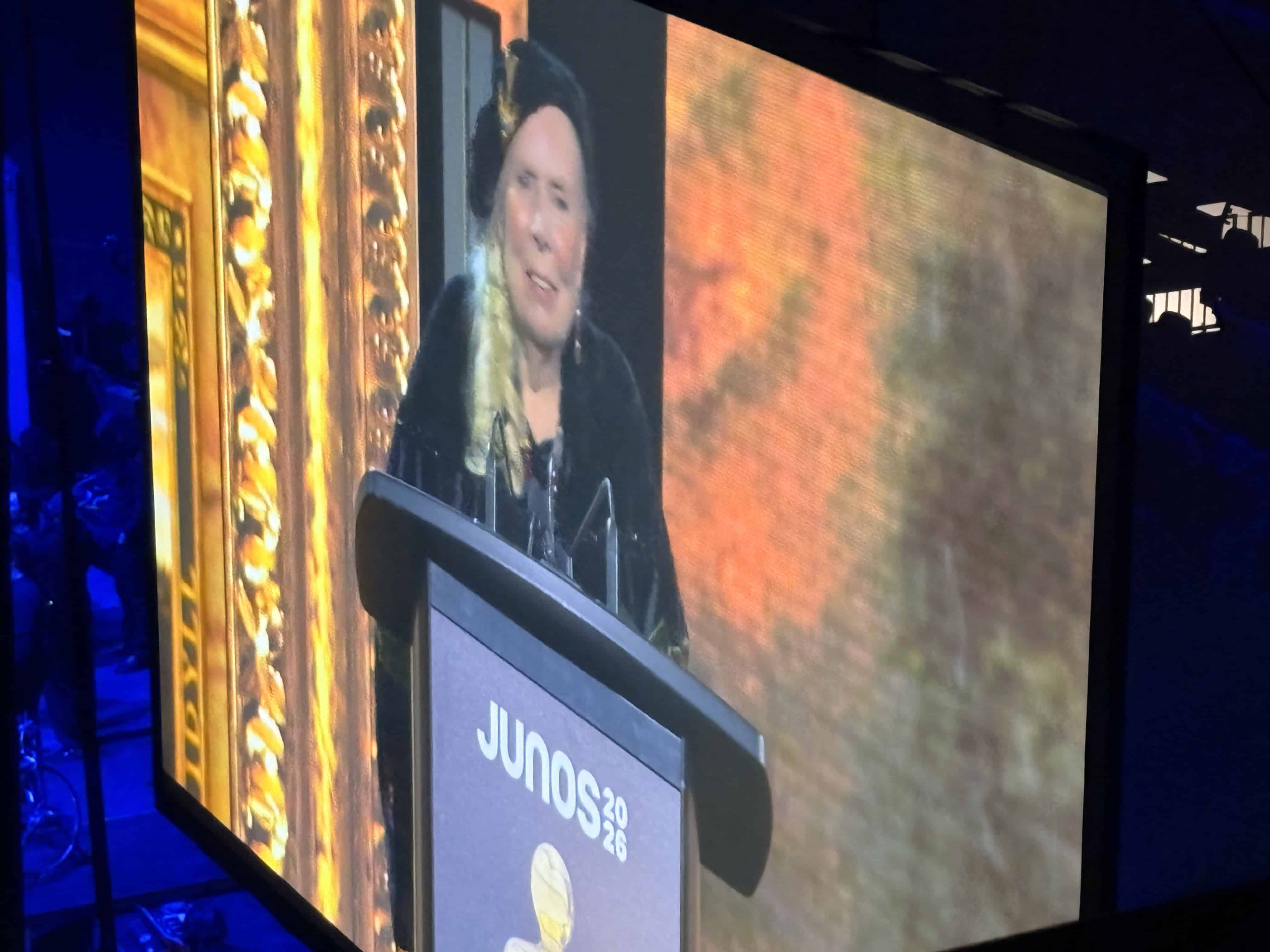A truly iconic moment -Joni Mitchell accepting the Lifetime Achievement Award at the 2026 Junos in Hamilton, Ontario