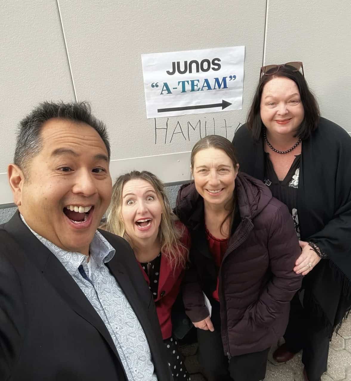 Made it! Group selfie moment outside the arena before heading in for our Juno 2026 Awards adventure.
