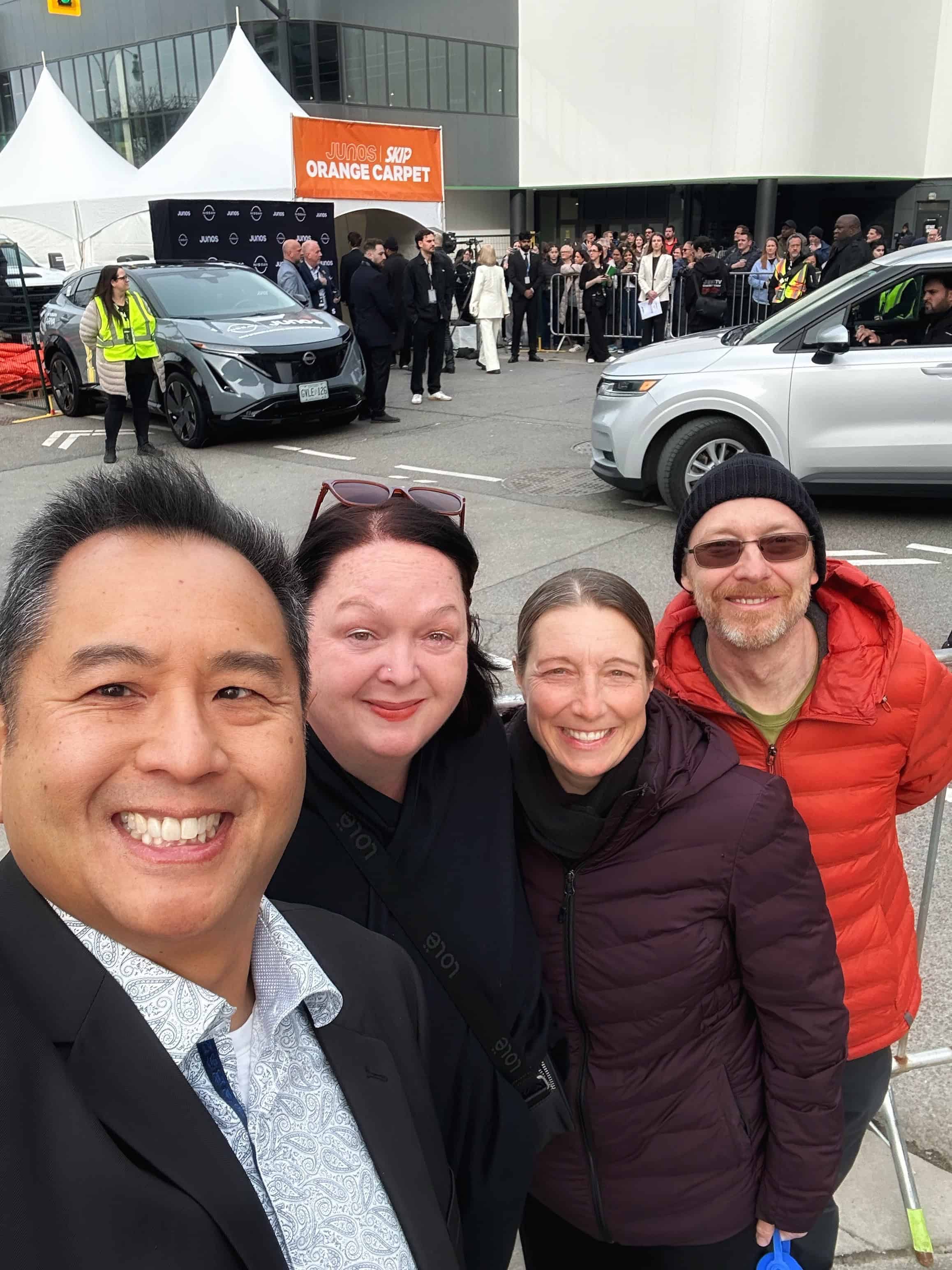 Kicking off the night on the iconic SkipTheDishes “orange carpet”. Our first taste of Juno Awards energy! Lisa's husband Tim, dropped us off.