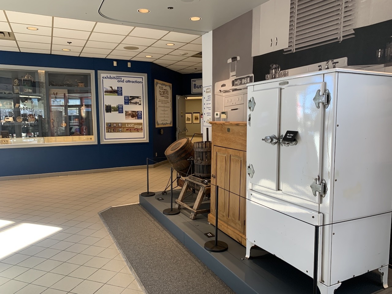 From the main lobby, this hallway connects visitors to the galleries with the historical exhibits at the St. Catharines Museum in Ontario, Canada.