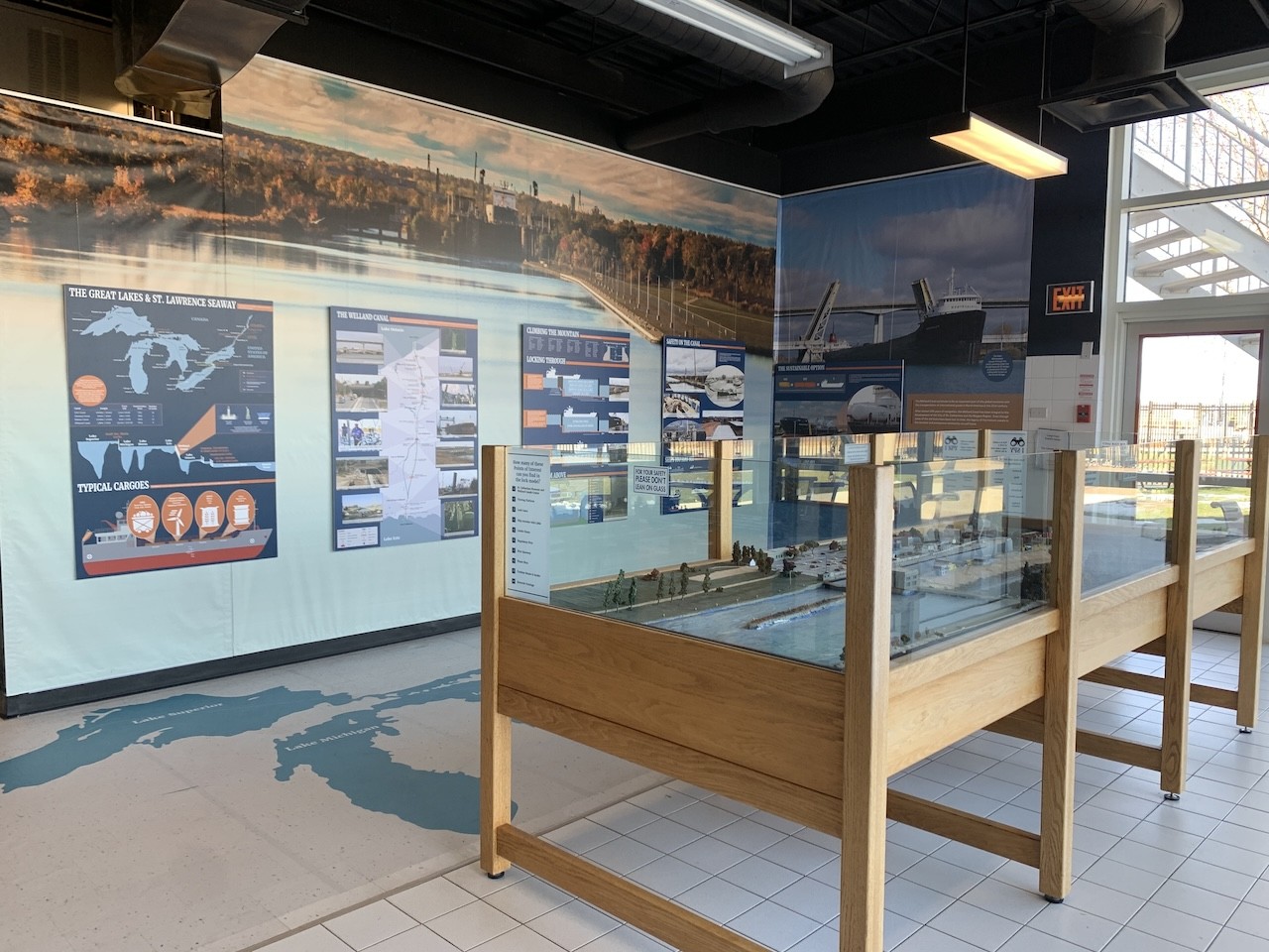 The Welland Canals Centre provides visitors with posters, information and models to explain the history of the Welland Canal.