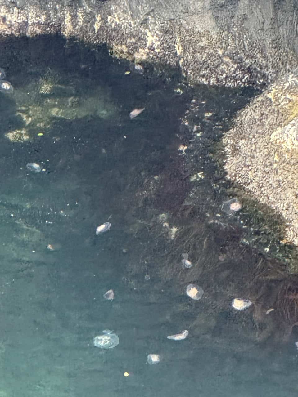 It was so interesting to look down over the cliff and see the jellyfish swimming along the shoreline of the Skerwink Trail in Newfoundland, Canada.