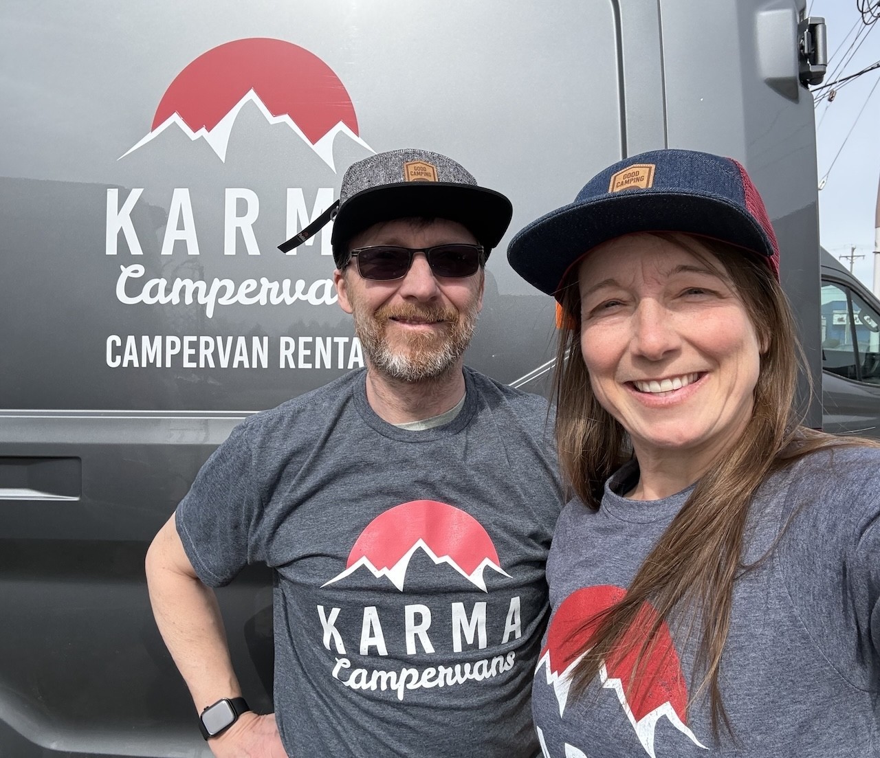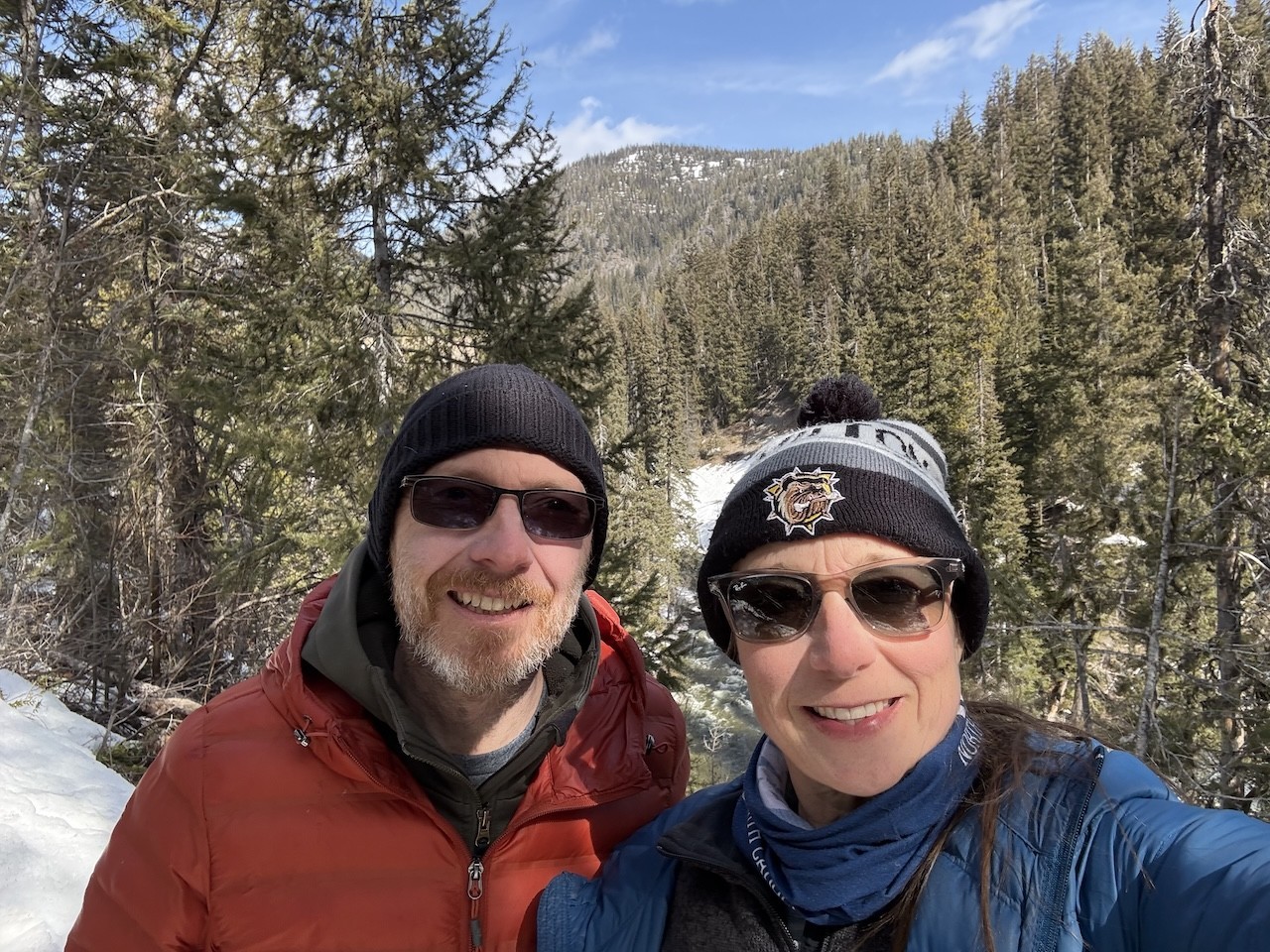 Big smiles for sunshine and a beautiful hiking location on the Canyon Nature Trail at Manning Park, British Columbia, Canada.