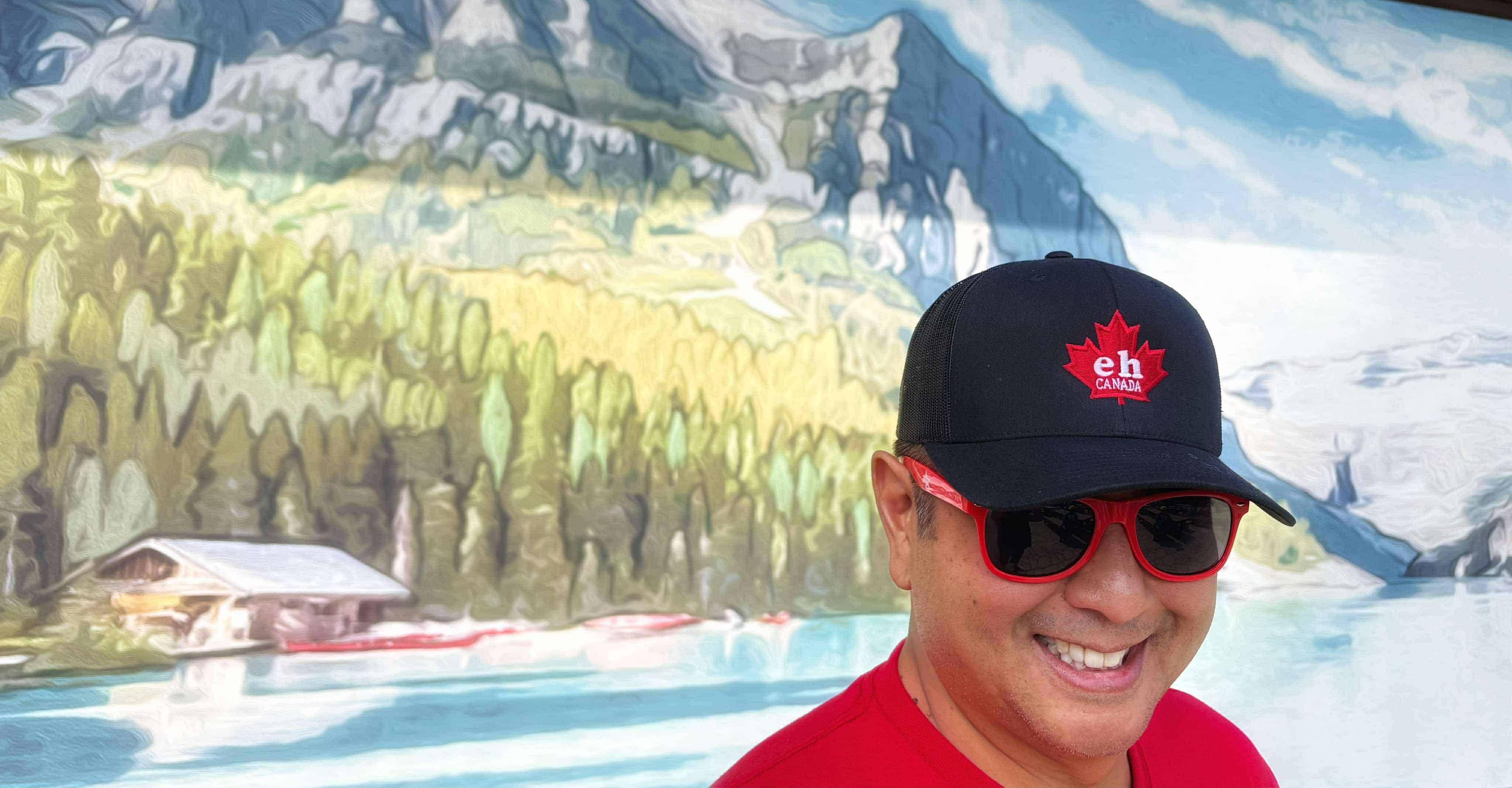 Jeff Santos explores Canada Halloween in style wearing an EH Canada baseball cap and t-shirt.