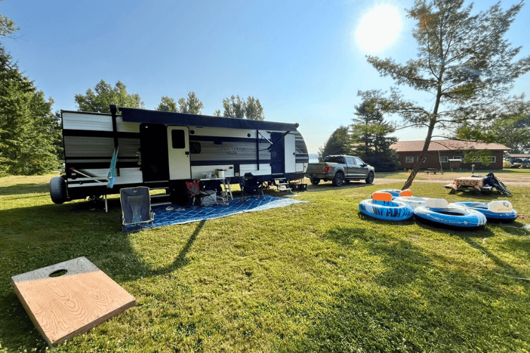 At OWL Rafting, camping was more than just a place to sleep—it was an experience. We brought our own camper trailer and spent our evenings stargazing beside the communal campfire. Furthermore, families enjoyed the sandy beach, open spaces for games, and easy access to river activities. From sunrise paddles to sunset campfires, our stay was filled with connection, comfort, and Canadian outdoor adventure.
