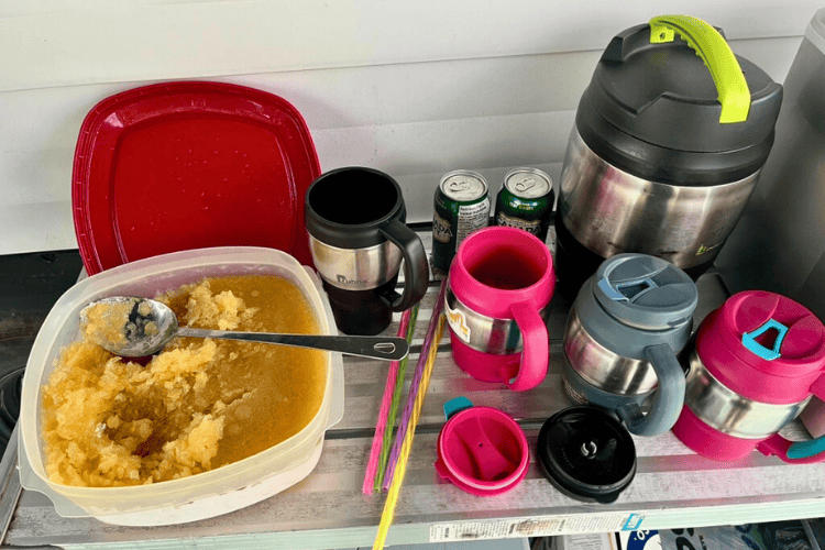 Of course we pre-made frozen slushy drink from our collection of Glamping Essentials camp and cottage drink recipe cards. It travelled well and cooled us off that evening.