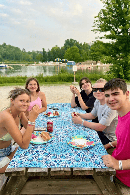 Now that's a view from the picnic table! These five kids have been camping together as long as they can remember, always a good time when they get together.
