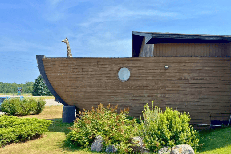 Interestingly, behind the large sign indicating we have arrived, there was a large Noah-style ark. We had to pull over and explore!