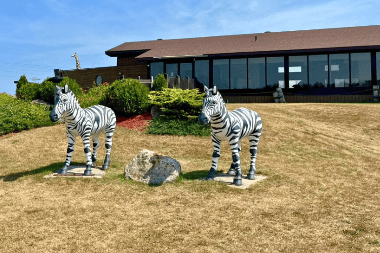 Out front of the Ark were a pair of zebra statues, clearly ready to board. Inside the Ark we found a small gift shop and a large, empty banquet room. Signs that this area was bustling with activity in a past life.