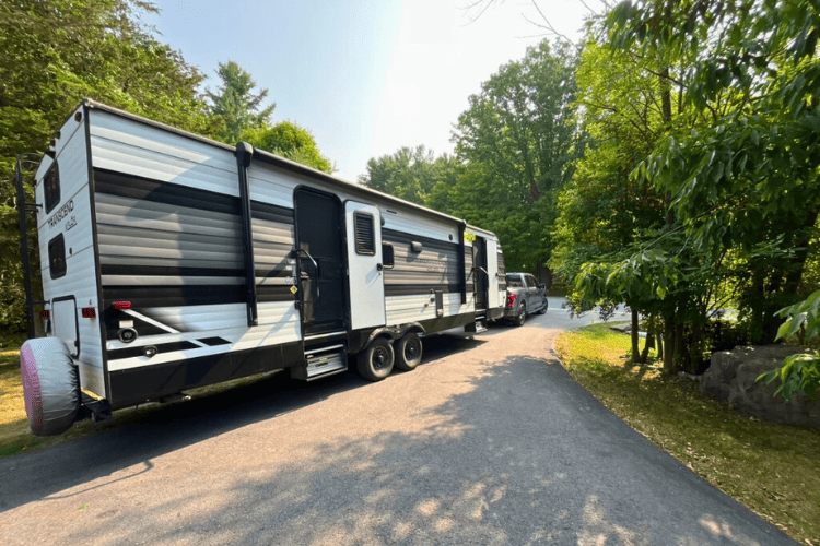 The Grand Design 265BH is loaded and (once we close the doors) ready for a short 2.5 hour drive from Kingston, Ontario, to Splash Valley Waterpark and Resort. This is one of our shortest trips this summer.