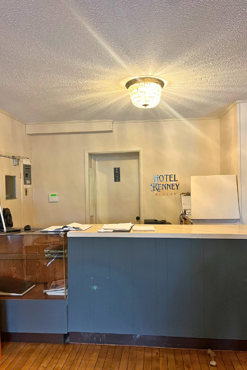 The registration area at Hotel Kenney is modest, yet welcoming. Keeping with Canadiana historical charm of an 1800's travellers inn along the Ridea Canal, Ontario.