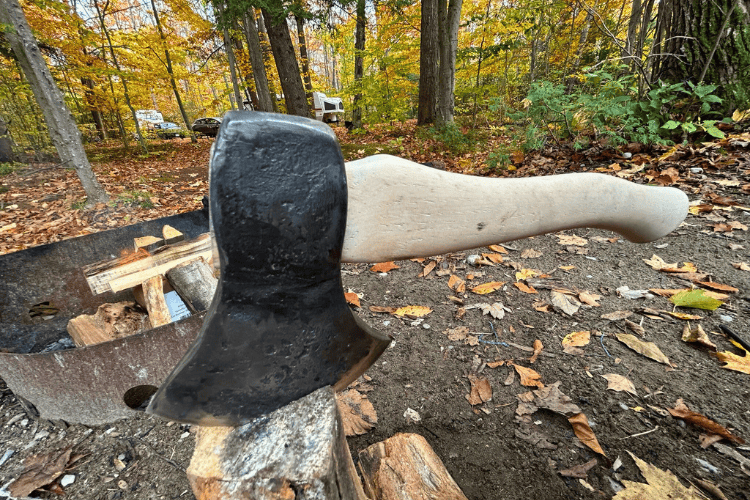 Jason's hand-forged axe from Axcadmy in its natural environment - the campsite! What an amazing take-home after a one-day workshop in Toronto, Ontario.