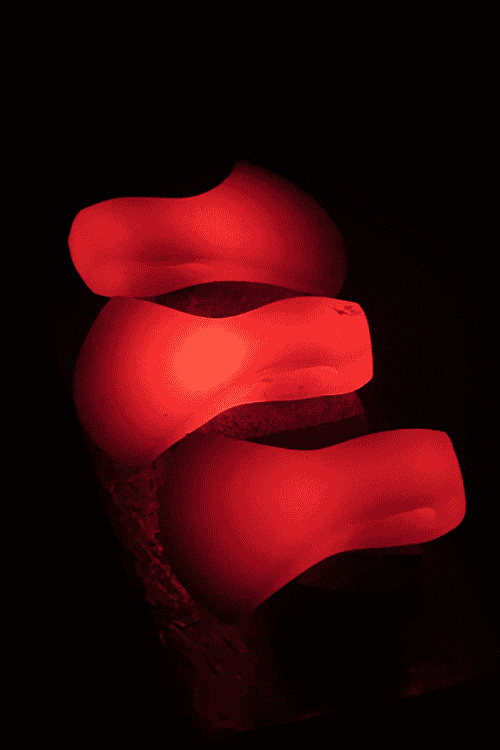 Fresh out of the Mighty Forge - the steel axe heads glow very bright red at Axcadmy during an axe forging workshop in Toronto, Ontario.