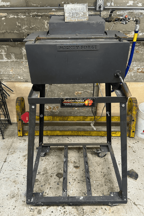 An example of one of the four forging units available at Axcadmy in Toronto. This one is a Mighty Forge and gets over 1,000 degrees celsius inside!