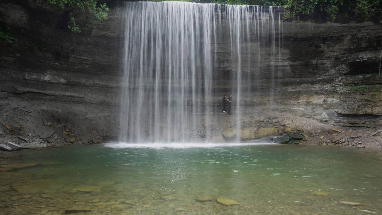 Behind the falls at Bridal Veil Falls on Manitoulin Island