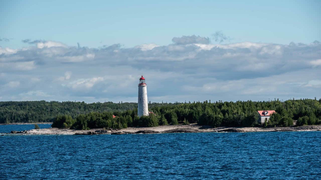 Cove Island Lighthouse as we cruised by on the Chi Cheemaun ferry on route to Tobermory on the Bruce Peninsula