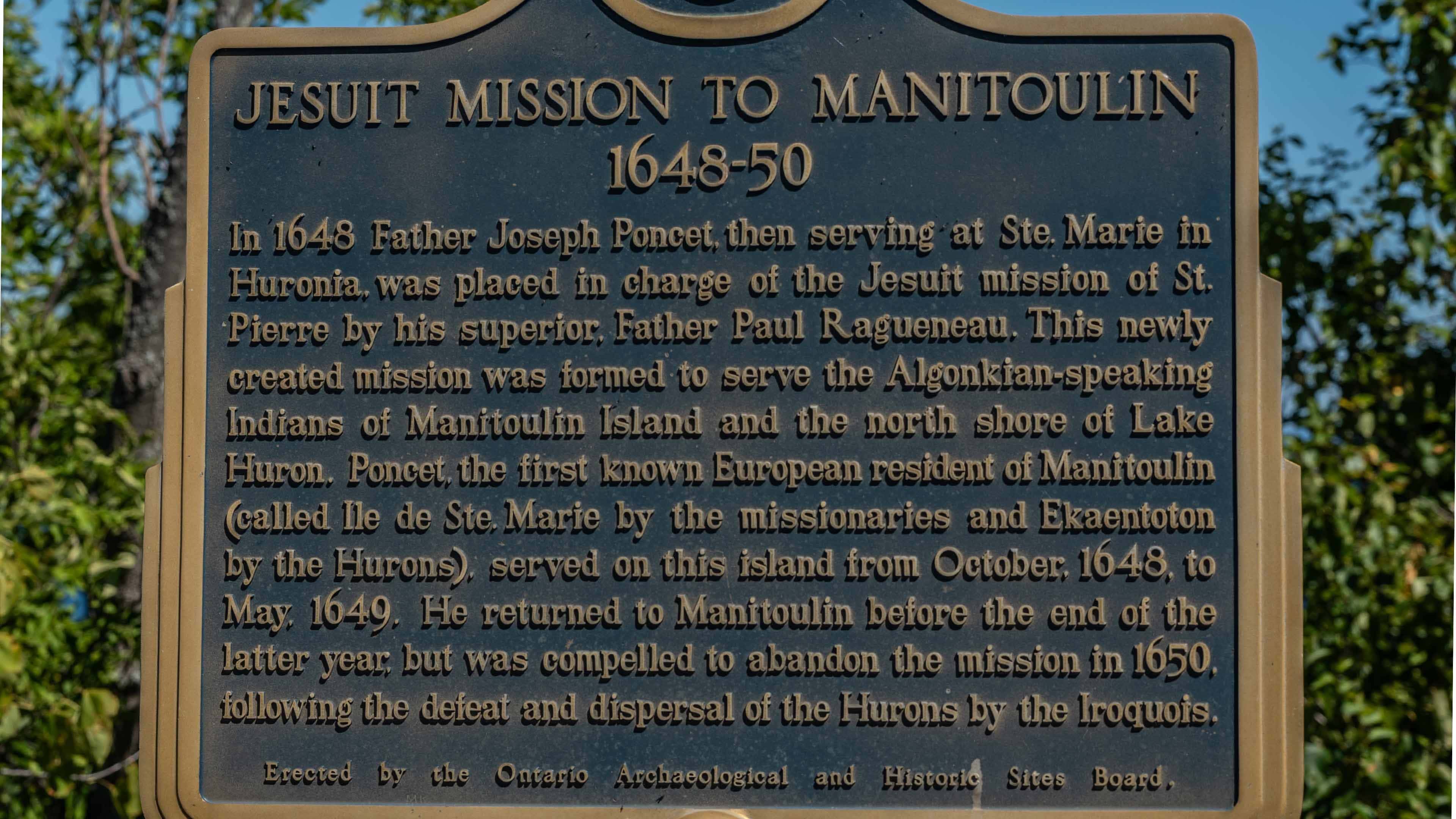 Jesuit Mission to Manitoulin” refers to the Catholic missionary work that the Jesuit order carried out on Manitoulin Island beginning in the 17th century, during the early period of European contact with Indigenous peoples in the Great Lakes region.