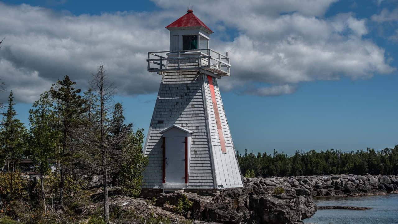 South Baymouth lighthouse houses the rocky shores of Lake Huron and Georgian Bay.
