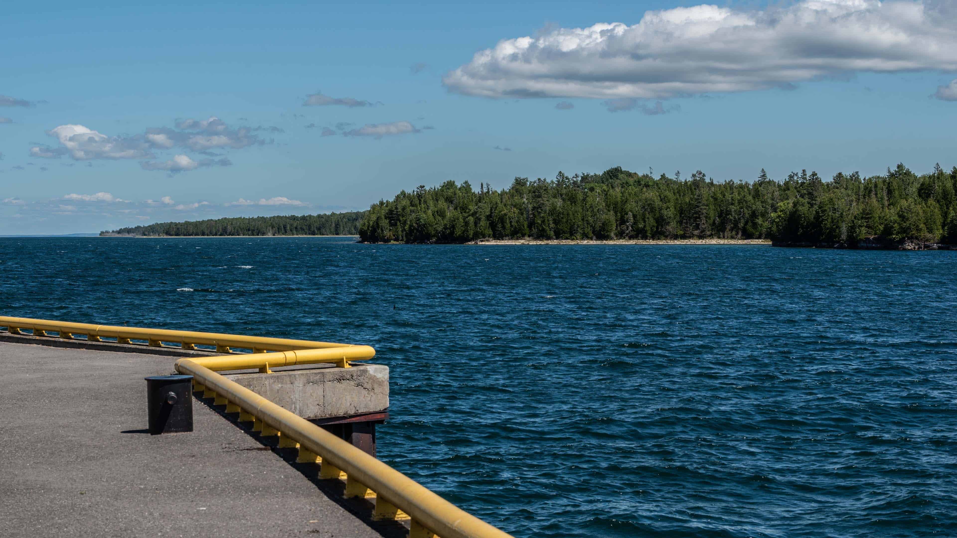 The pier at South Baymouth, where the Chi Cheemaun docks on Manitoulin Island, looking out into South Bay