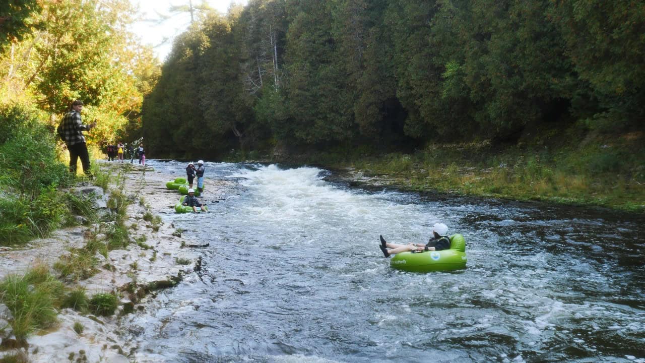 Tubing down the Grand River at the Elora Gorge in Ontario, Canada