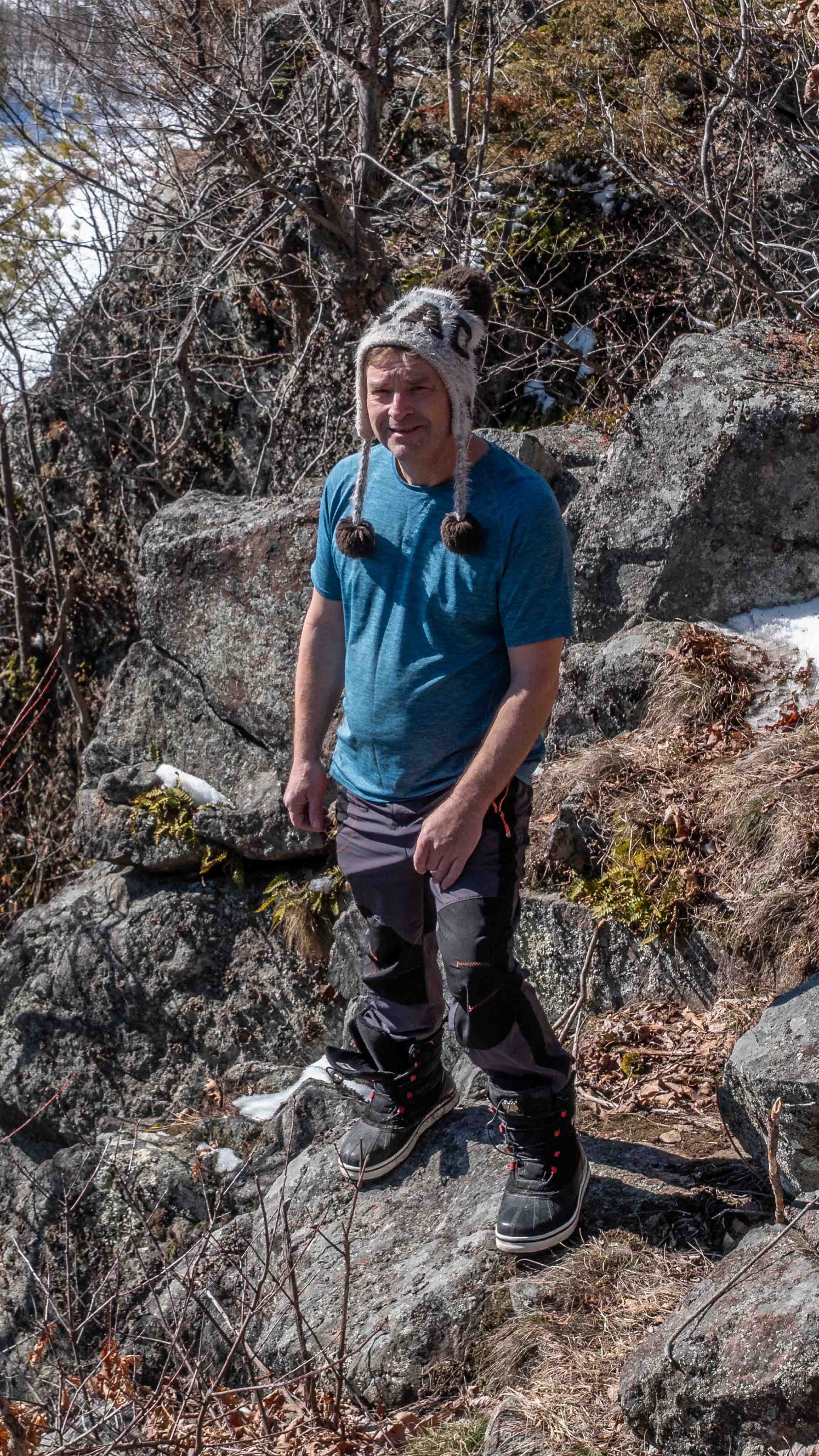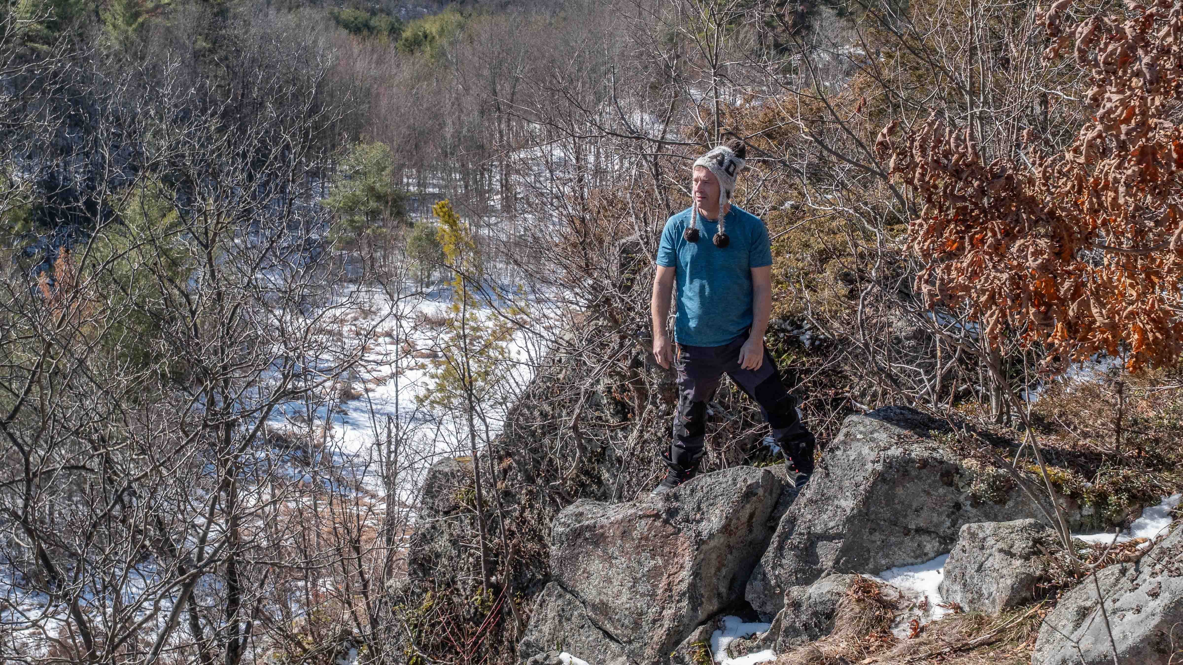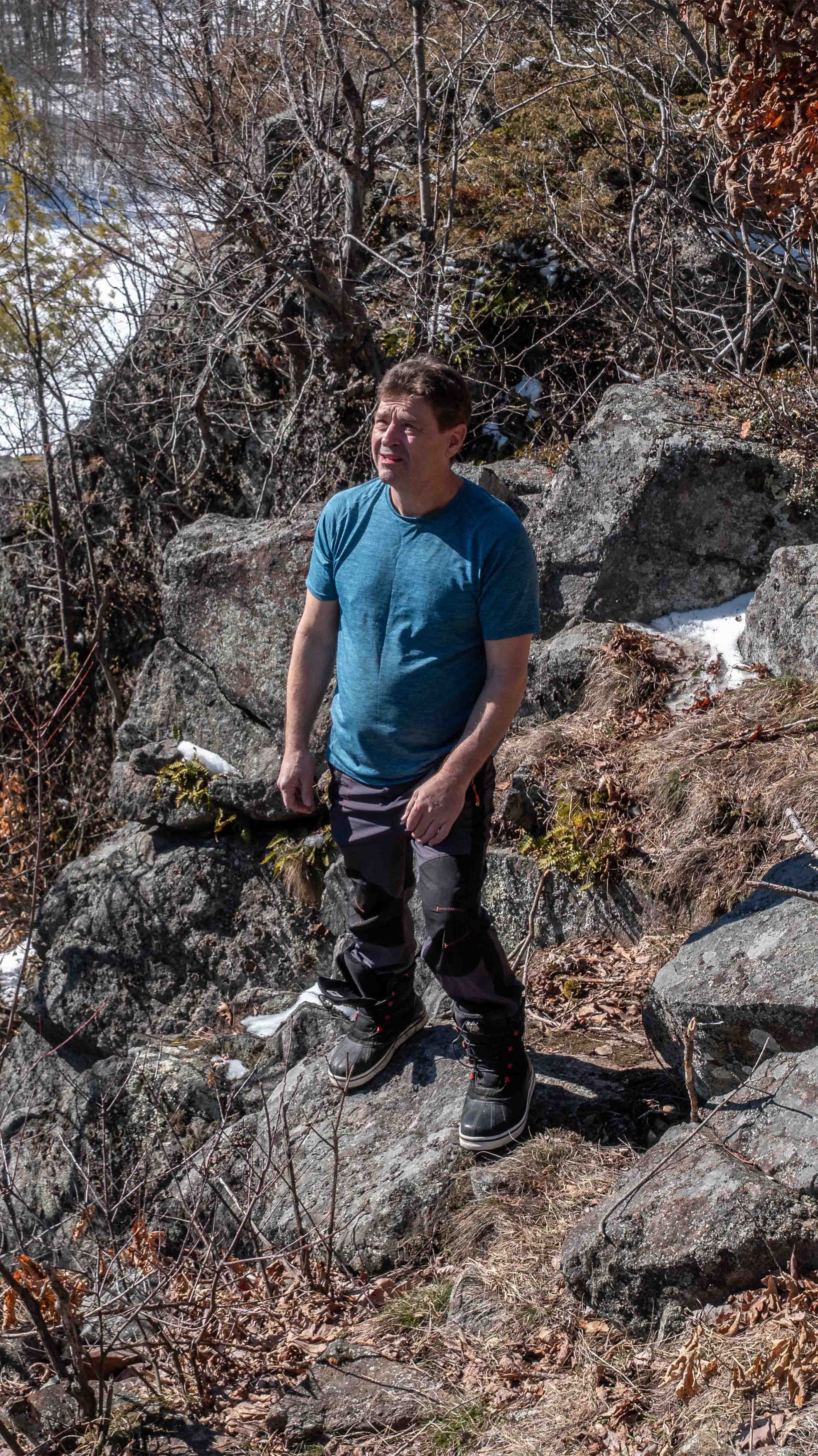 posing for the camera on top of the rocks at Marble Rock Conservation area near Thousand Islands, Ontario, Canada