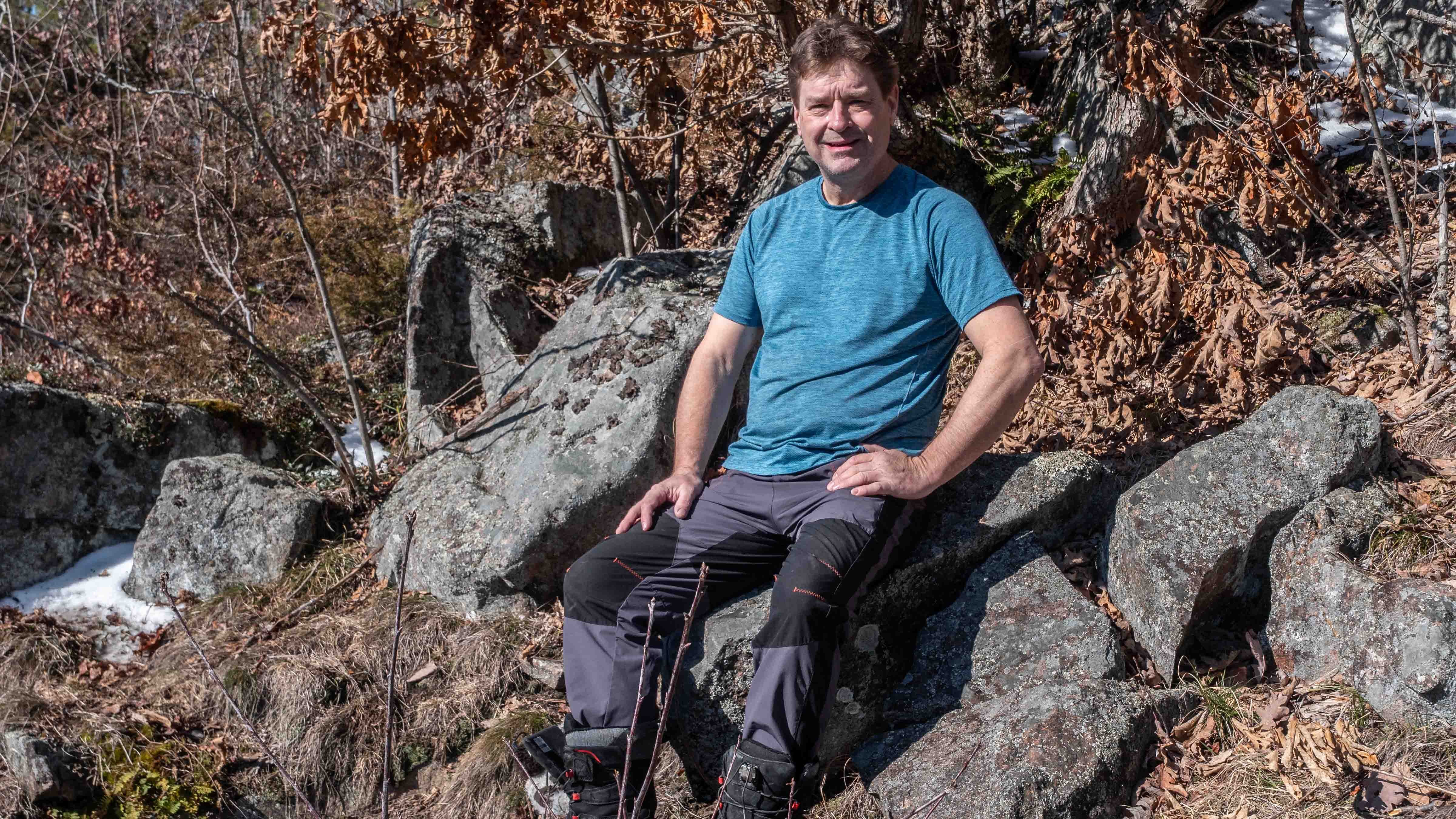 Hiking on top of the Canadian Shield at Marble Rock Conservation Area in Ontario, Canada