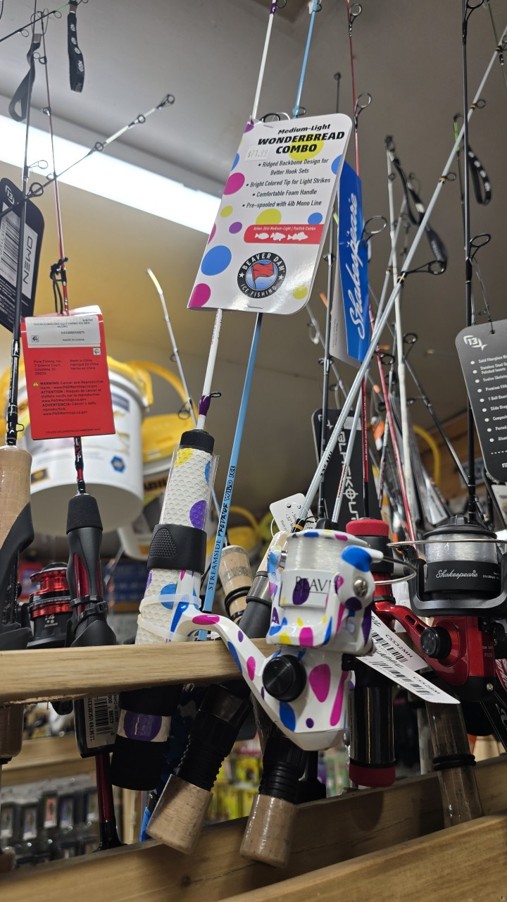 Ice fishing rods for sale at Billy Bob's. Dropped your rod down the hole? No problem! Pop over and grab a new one
