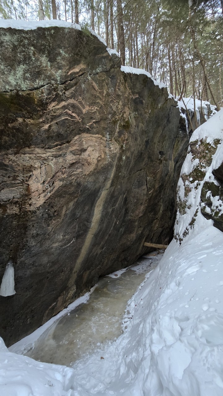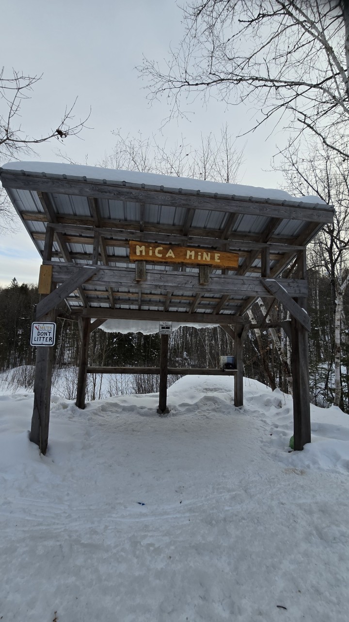 The Purdy Mica Mine near Mattawa, Ontario Canada is a standout stop along the Explorers Snow route, marked as Stop #3 on their fun map and tucked into the rugged forests of Northeastern Ontario. Once an active mica mining site in the early 1900s, the area supplied valuable mineral used in electrical and industrial applications, leaving behind a narrow rock entrance that opens into a striking pit layered with shimmering mica throughout the exposed Canadian Shield.