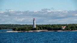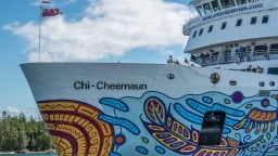 The Chi-Cheemaun Ferry is painted as part of a cultural and branding project that celebrates Indigenous art and heritage while making the ship itself an iconic symbol of Manitoulin Island and Ontario tourism.