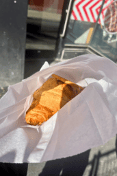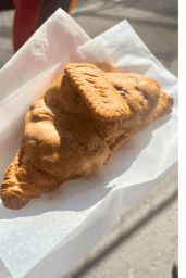 Out front of Hazukido in Montreal, I enjoyed my fresh, fluffy and sweet Biscoff Crookie in Montreal, Quebec. Can you believe the size of that croissant?