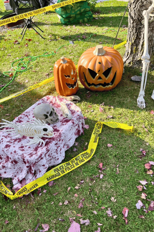 There may have been a few different types of skeletons at our campsite this Halloween... including this piranhas. Plus two jack-o-lanterns as seen in the daytime.