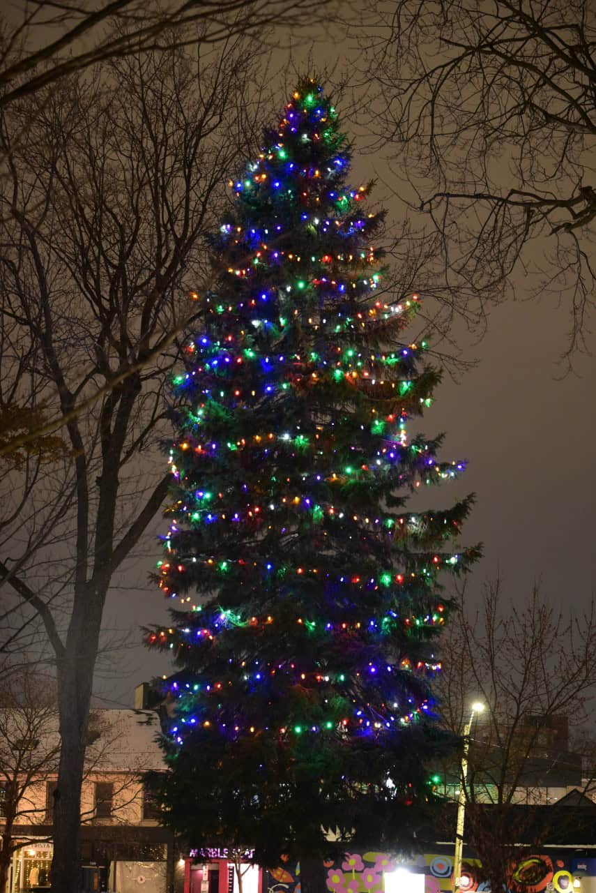 A glowing Christmas tree lights up Victoria Park during the Lighting of the Lights event in London, Ontario. A whimsical and festive attraction for all ages to enjoy.