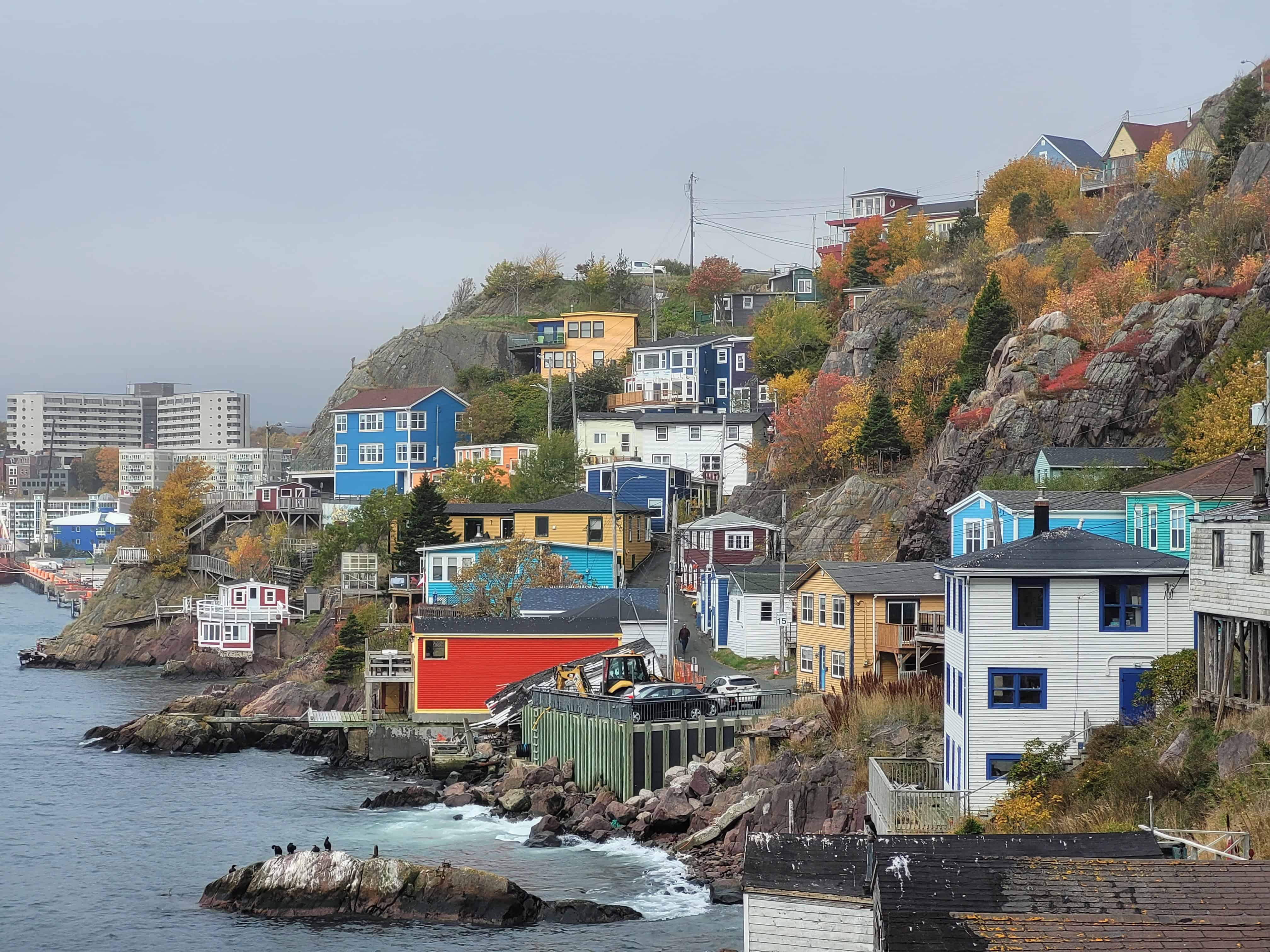 Take in the stunning view of The Battery's colourful houses from the North Head Trail, St. John's, NL. This scene offers a glimpse of this iconic St. John's neighbourhood against the backdrop of rugged coastline.