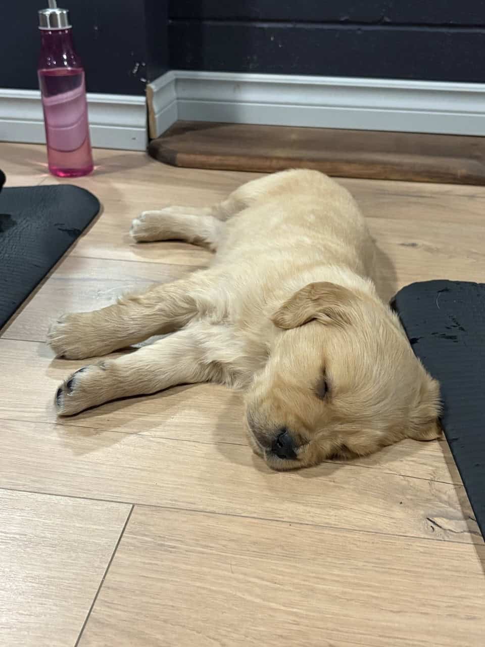 This tired puppy was exhausted from the yoga and snuggles at Studio 35 Puppy Yoga in Hamilton, Ontario, Canada.