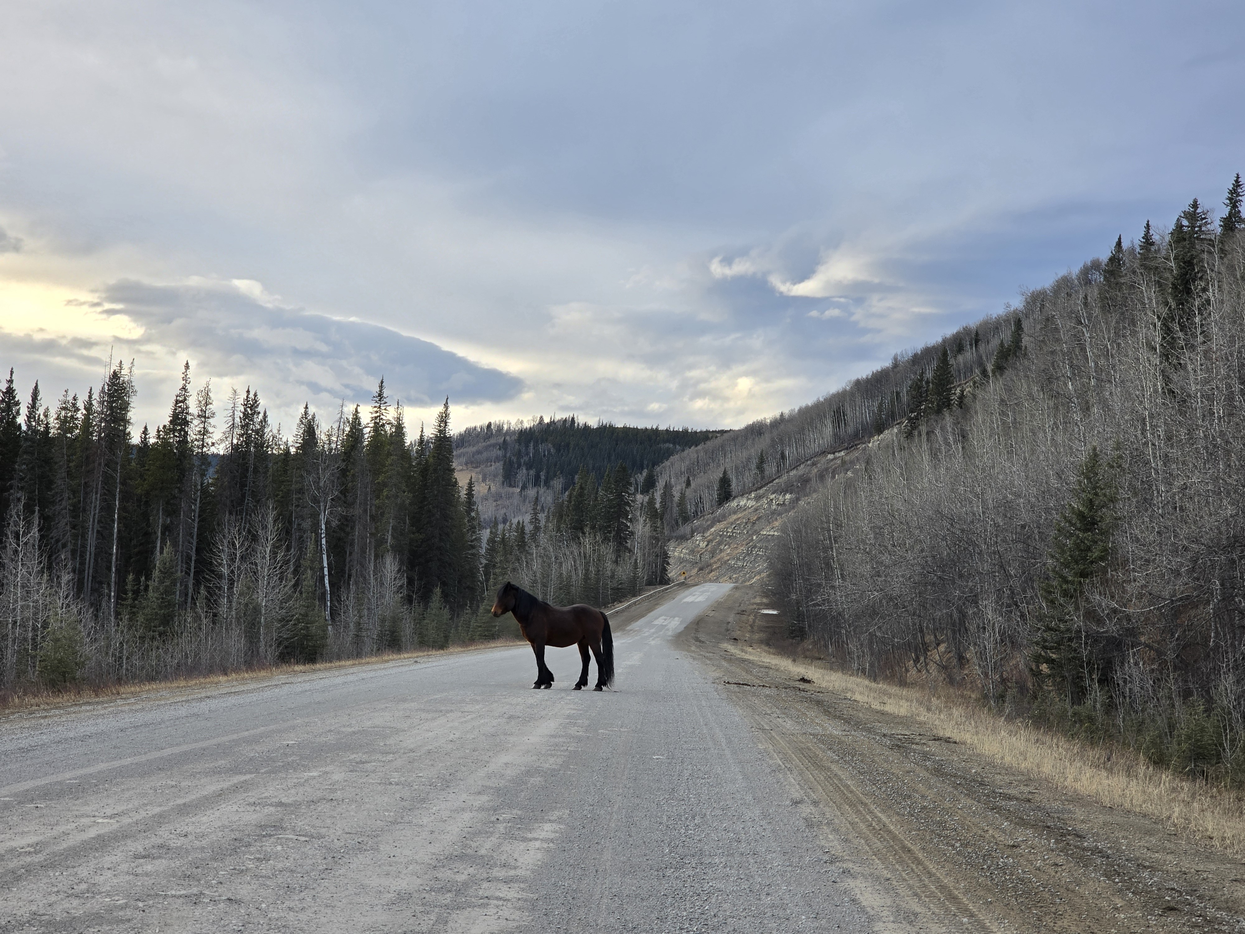 Wild horses roam freely across parts of Clearwater County, especially in the foothills and near the eastern slopes of the Rocky Mountains.