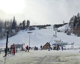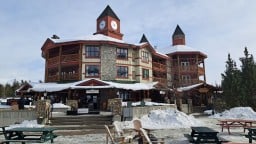 After a full day skiing at Kimberley Alpine Resort, sometimes the best place to sit down is wherever there is a bench made of skis. A quick rest after a day on the mountain.