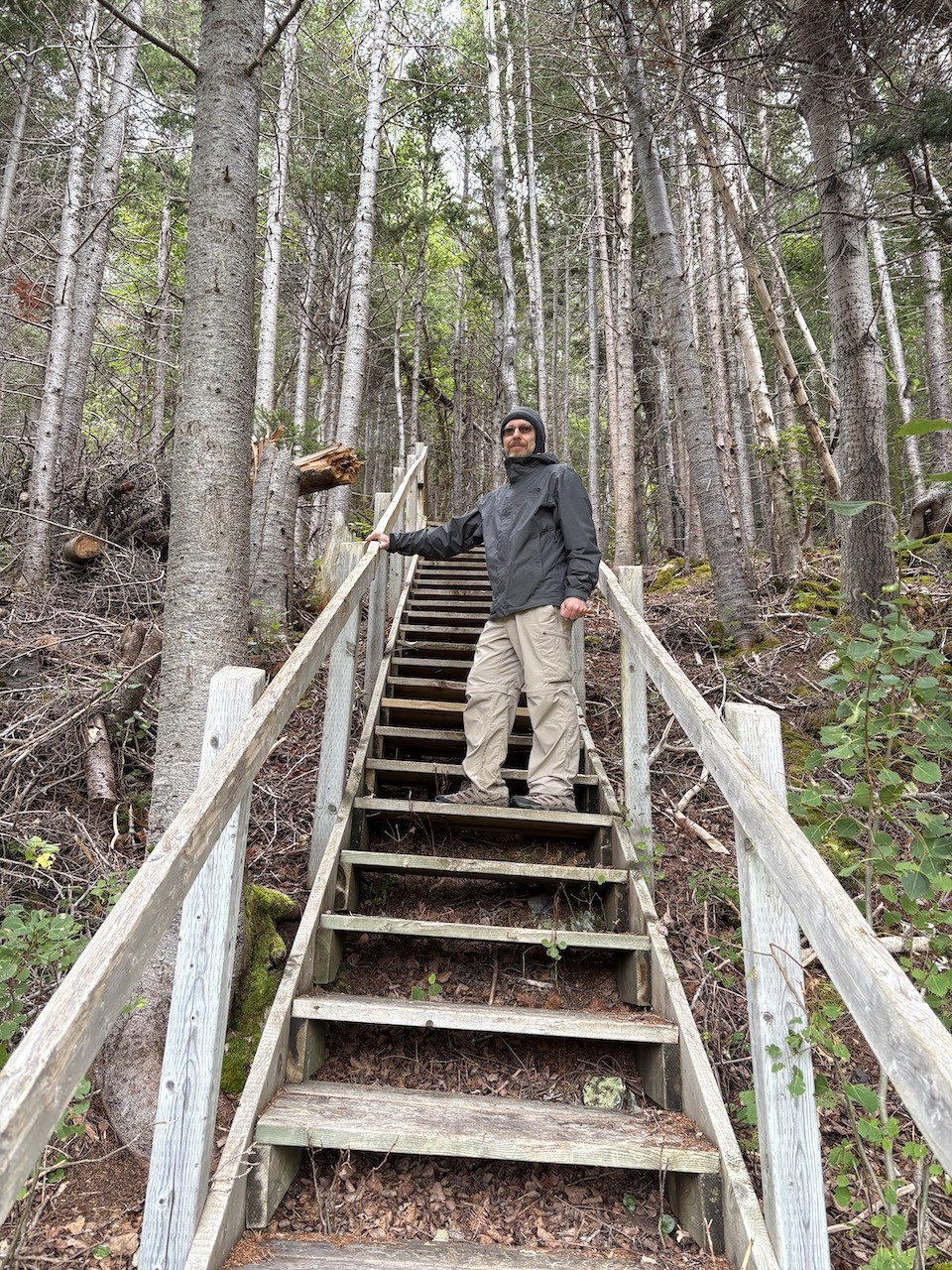 There were over 100 stairs to start the steep ascent to the summit of the hike at Goodyear's Cove in South Brook, Newfoundland, Canada.
