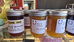 Golden apple fritters at Mountain House Bakery in Red Deer, a popular sweet treat with a crisp outside and soft, flavourful centre.