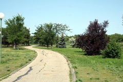 The main recreation path following the shores of Wascana Lake near the Wascana Centre Display Ponds located in the City of Regina, Saskatchewan, Canada.